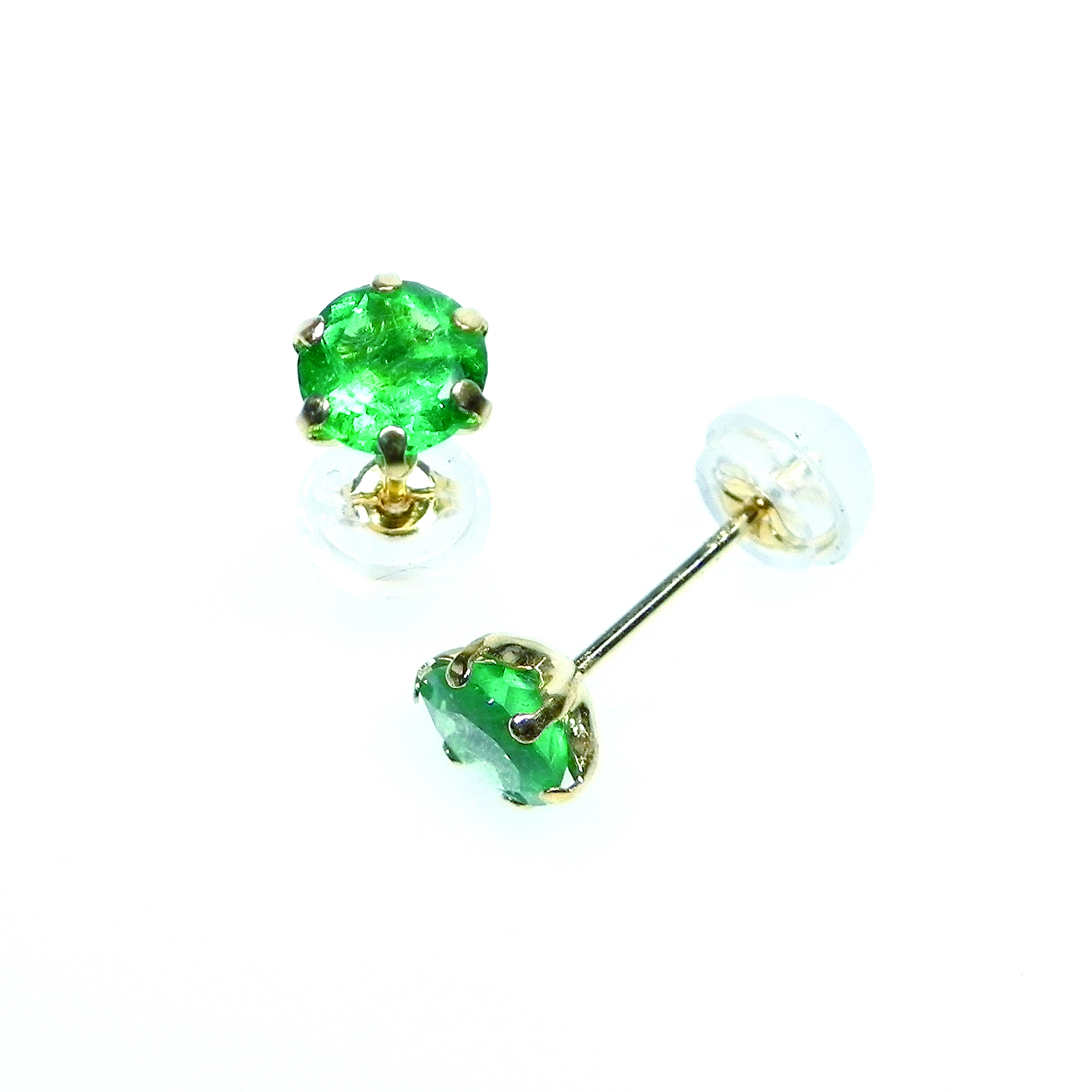 耳元で輝くエメラルドはシンプルでオシャレな印象に