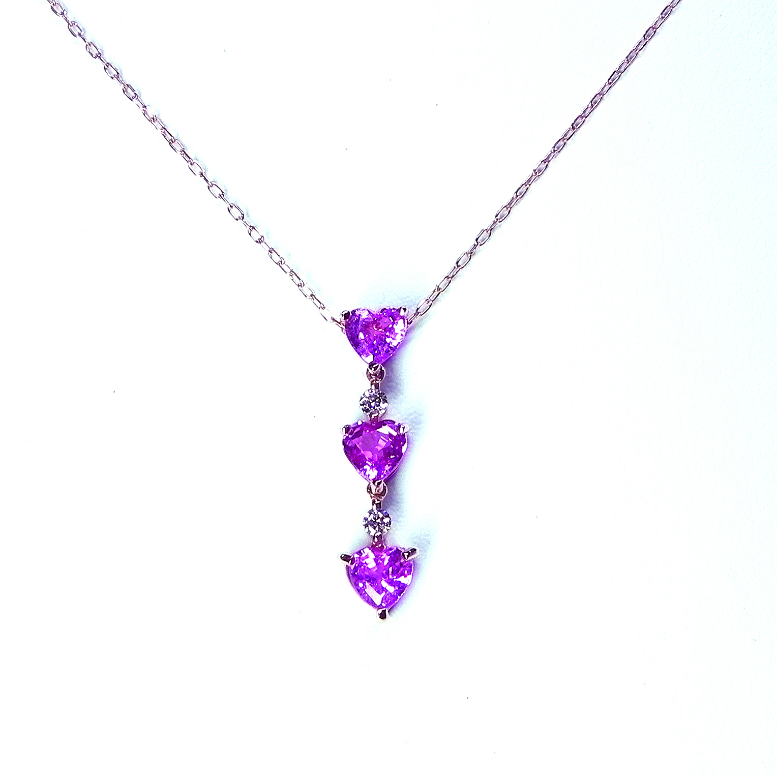 愛らしいピンクサファイヤが3つ連なったネックレス
